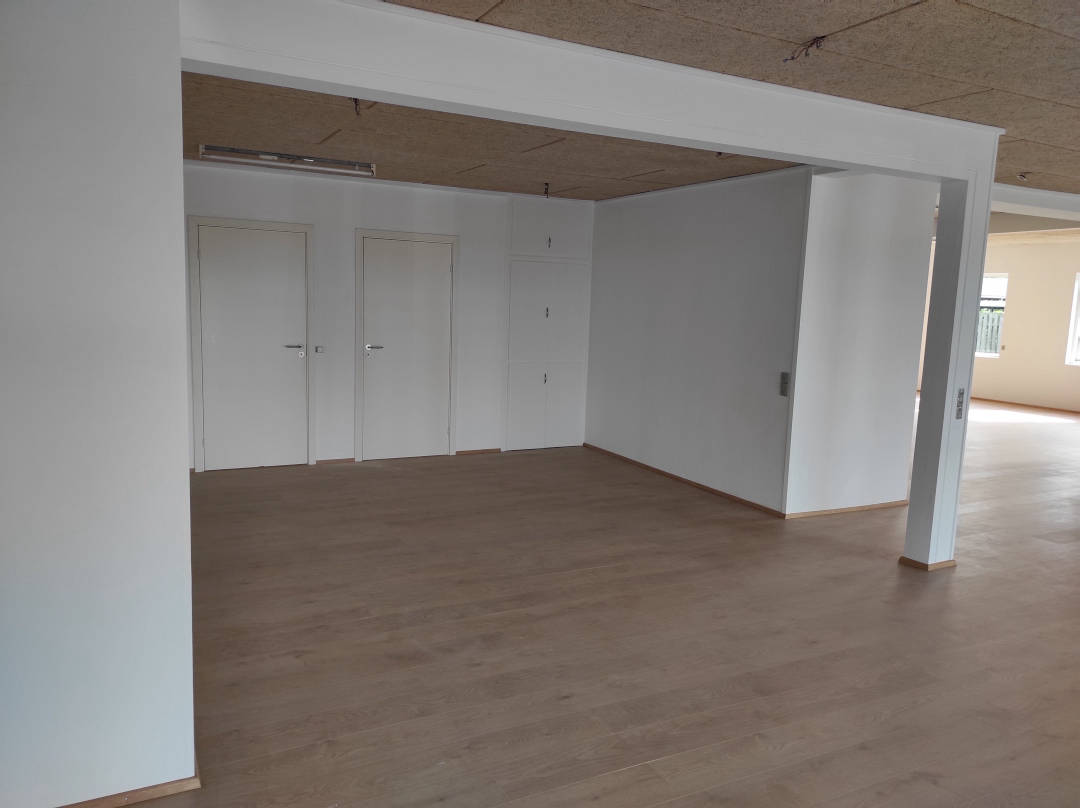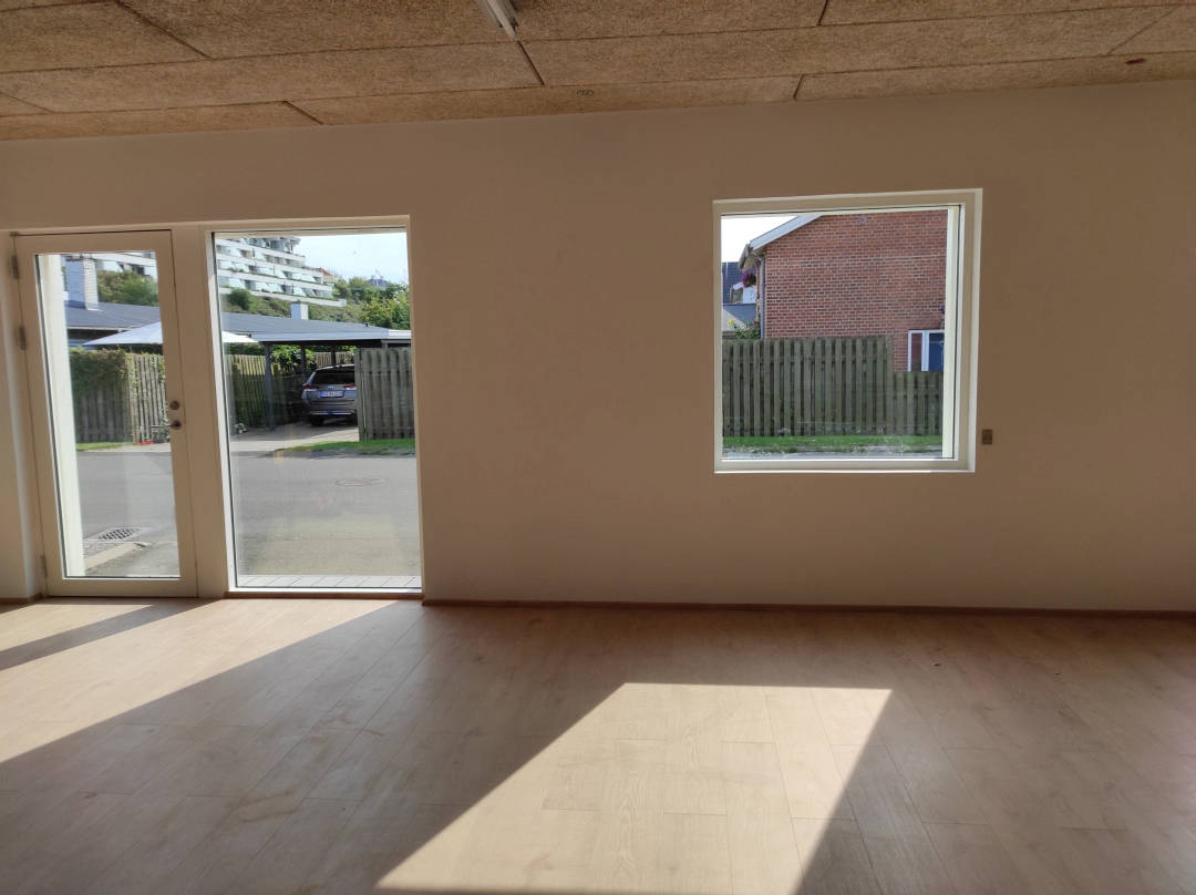 Se videon til højre, og får en gennemgang af lokalet indvendigt. Lokalet fremstår lyst og flot, med nye gulve overalt. Man vil nemt kunne opdele lokalet i mindre rum/kontorer hvis det ønskes. Til lokalet er 2 x toiletter, samt 2 tekøkkener der kan anvendes til frokoststure eller mindre mødelokale.